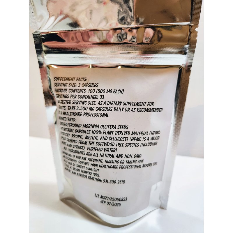 Moringa Oleifera Malunggay Seed Powder Capsules - Non GMO - All Natural Herbal Supplement(100)
