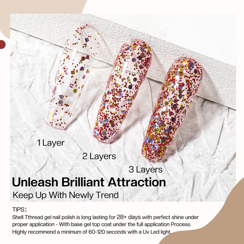 - 🌟Perfect to Apply: Soak off nail polish gel has good color rendering and it is featured with smooth appearance, and flawless coverage, so that gel nail polish glitter is easy to use, even for a beginner.