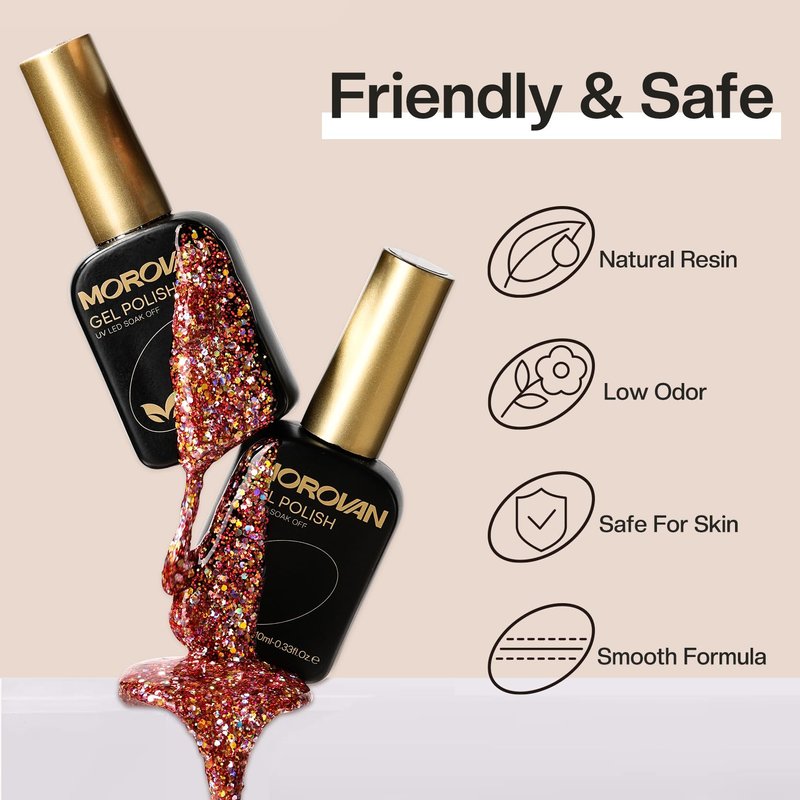 - 🌟Customer Service: Morovan is committed to providing customers with the best service. If there are any problems with glitter gel nail polish set, please does not hesitate to contact us. Enjoy your shopping!