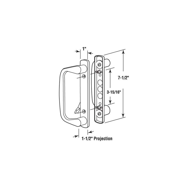 Mortise Style Sliding Glass Patio Door Handle Set, 3-15/16" Screw Holes, Low Profile, Long Base, White