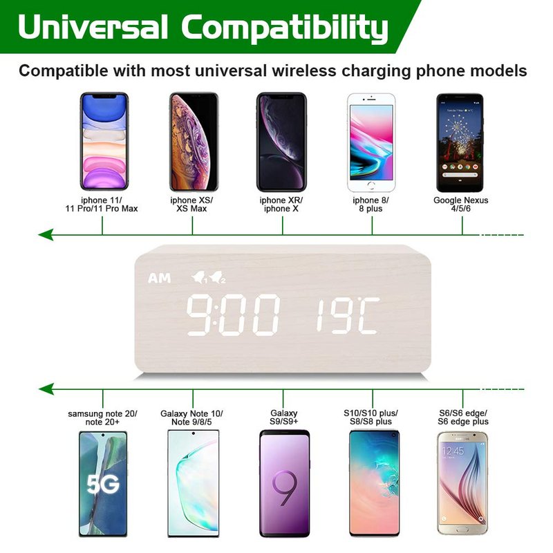 - ⏰【Stable Wireless Charging Station】- This wireless charging alarm clock supports wireless charging for universal cellphones in a stable and efficient way without overheating. It is very convenient and saves space, keeping your bedside table tidy.
