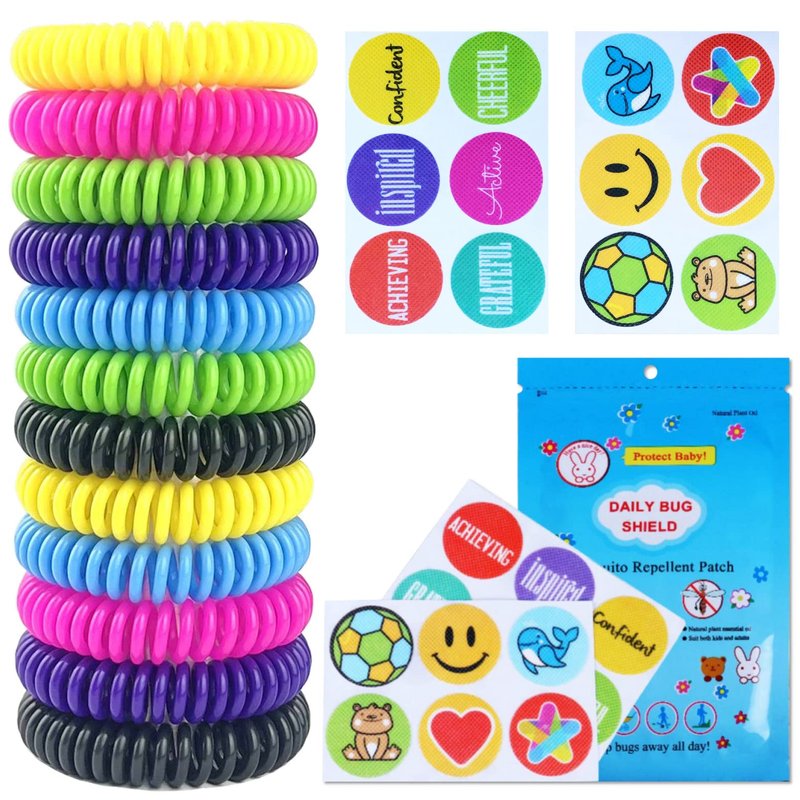 - Eco-Friendly and Comfortable: This economic package includes 12pack colourful mosquito repellent bracelets and 24pcs cute mosquito repellent stickers. The bracelets are made of EVA which is strong, colorful, reusable, waterproof, soft and lightweight. You won’t even notice you’re wearing it so comfortable! Good design for waterproof ring, you can enjoy playing water or swimming there are no limits!