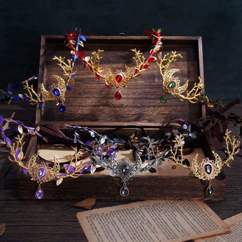 - UNIQUE DESIGN: This medieval elf crown is very unique and special. We combined moon, branches and crystal to create a woodland atmosphere. With different colors, it will be suitable for different situations, especially for Ren Fair or Carnivals!