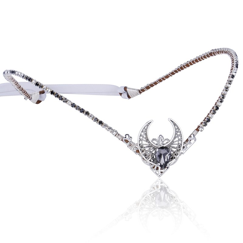 MOSTORY Handmade Silver Crystal Headpiece V-shape Fairy Crown Headband Elven Princess Tiara Black Gem Circlet for Wedding Bridal Maternity Shoot Ren Fair Fae Ball Cosplay Costume Accessory