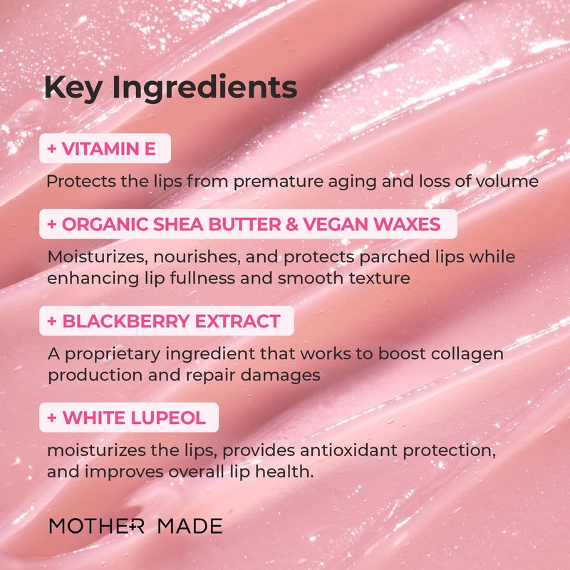 The Mother Made Natural Plumping Vitamin E Lip Mask is made with ingredients that are beneficial for your lips such as natural oils, organic Shea Butter, Collagen, and Korean Skincare for a luxurious experience. Hydrating Lip Moisturizer: This special lip moisturizer hydrates lips so they are smooth and soft. Lip Gloss Finish: This product not only nourishes your lips but also offers a glossy finish like lip gloss to give you an extra boost of beauty. Plumps Lips : This product intensely hydrates dry lips to remove fine lines and creases while instantly plumping lips so you can achieve bigger and fuller lips Volumizing Effect: Regular use of this Lip Mask delivers a volumizing effect for long-term increased volume that makes your pout look more luscious than ever before. Suitable For All Skin Types: Whether you have sensitive skin or combination skin, the Mother Made Natural Plumping Vitamin E Lip Mask is gentle enough to hydrate all types of skin with its key ingredients that will not cause any reactions or irritations on the skin. Nourishing Formula: The nourishing formula works to provide essential hydration for your dry or cracked lips leaving them soft and supple throughout the day!