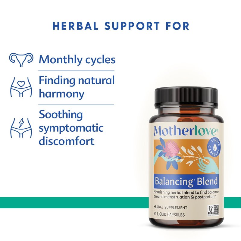Motherlove Balancing Blend (60 Liquid caps) Herbal Supplement for Period & Postpartum Hormonal Health—Non-GMO, Organic Herbs, Vegan, Kosher