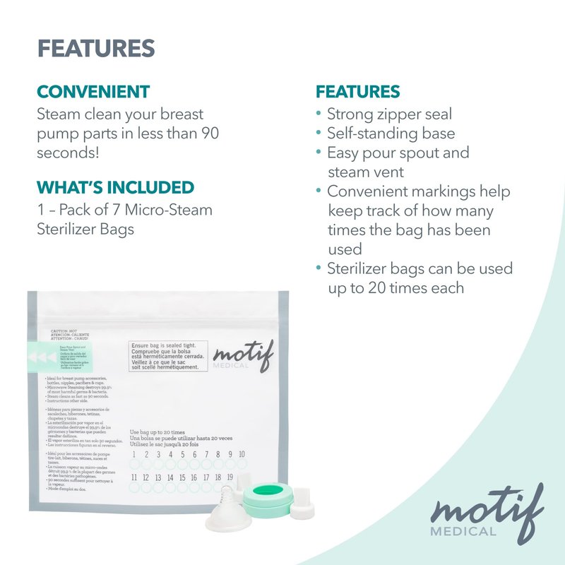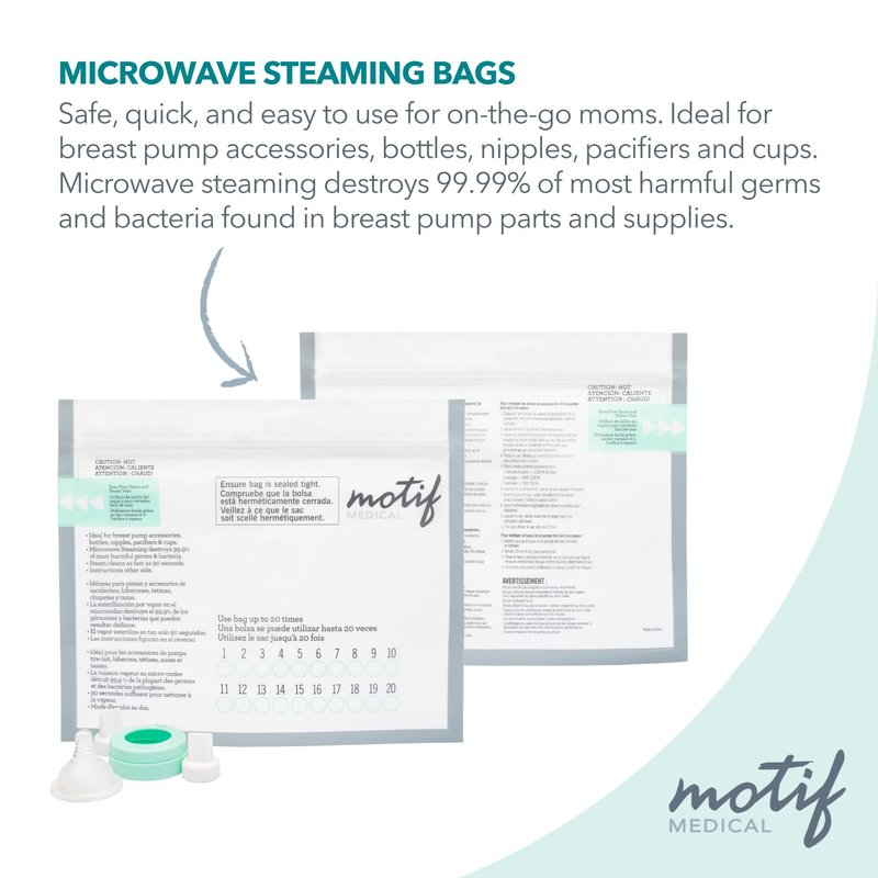Motif Medical, Breast Pump Parts and Accessories Microwave Steaming Bags - Pack of 7