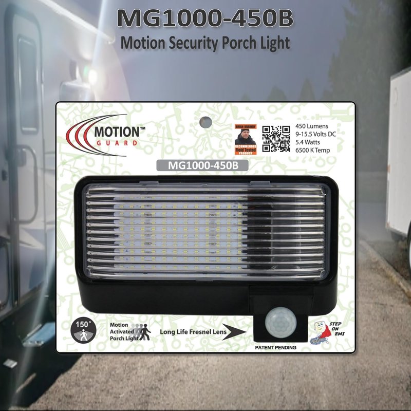 MOTION-GUARD, MG1000-450B, RV Exterior Mounted Bright LED Motion Sensor Porch Flood Light, Rated IP65 with INTELA-Sensor, Polarity Guard, Adjustable Sensitivity and EMI Suppression