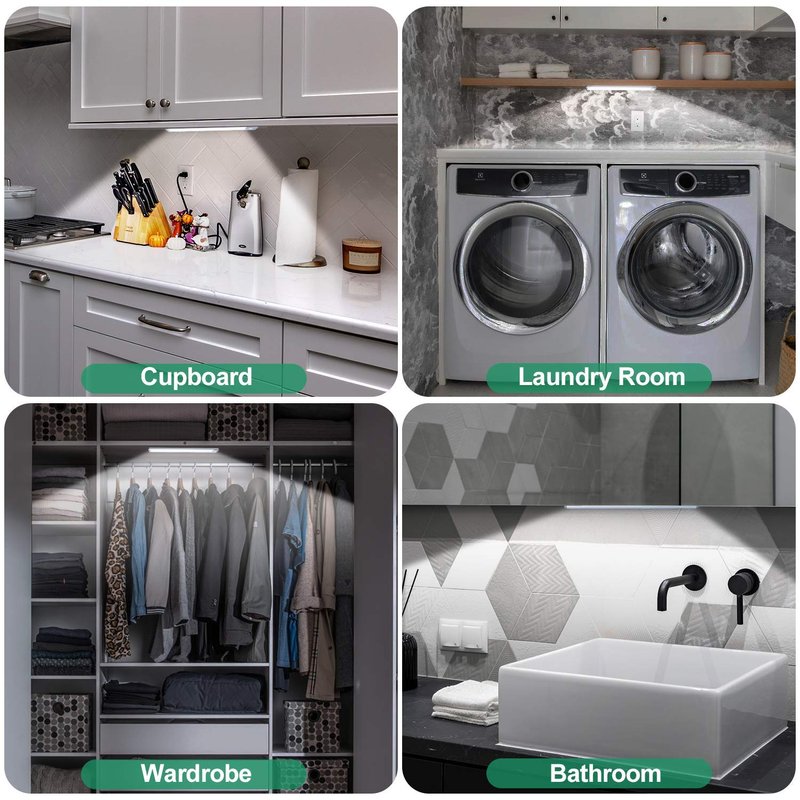 -Wide Applications: Ideal for cabinets, closets, basements, stairwells, indoor garages, and so on.