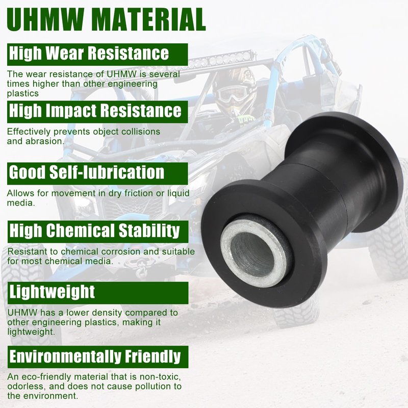 - 【UHMW MATERIAL】Made of ultra-high molecular weight polyethylene material, this product has excellent wear resistance and remarkable durability, capable of withstanding continuous jolts and vibrations. Additionally, it exhibits outstanding self-lubrication properties and a low friction coefficient, providing support for smooth suspension movement and superior handling performance.