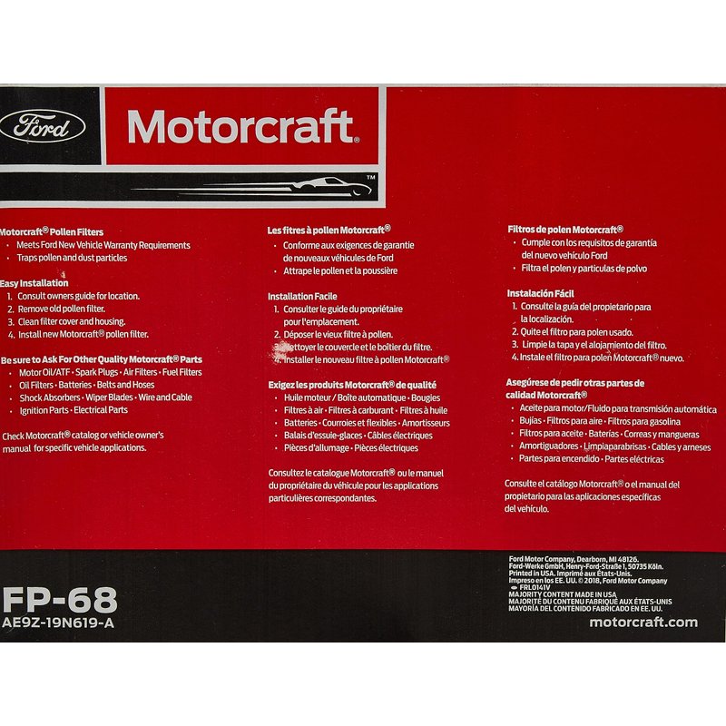 Motorcraft FP-68 Cabin Air Filter, Original Version, 1 Count (Pack of 1)