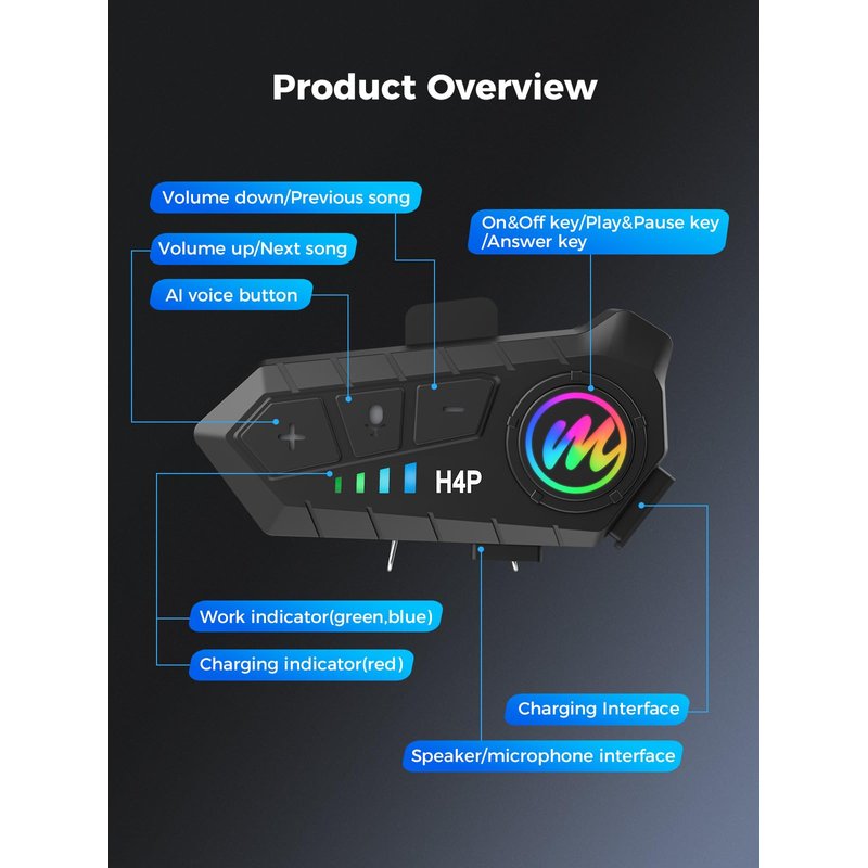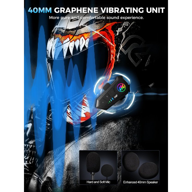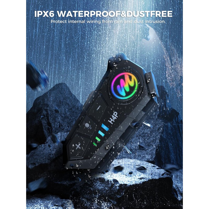 - 【IPX6 waterproof & Dustfree】H4 Plus motorcycle headset system features IPX6 waterproof for dealing with harsh weather conditions such as dust, rain, storm, snow and low temperature. Scientific design makes it perfectly adapt to most open face, modular and full-face style helmets.