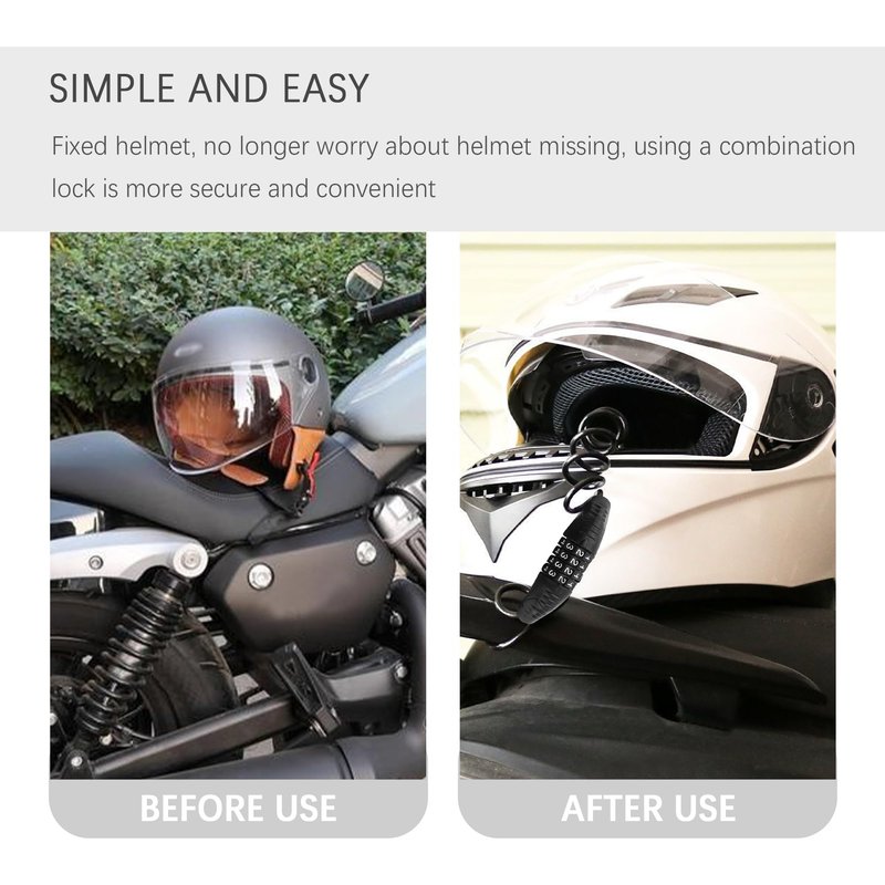 - Easy to Use: Our motorcycle helmet lock comes equipped with a durable cable that extends up to 51.18inch, offering versatile securing options. Whether fastening one or multiple helmets to any motorcycle part, its flexible length allows for multiple wraps, guaranteeing robust and reliable locking.