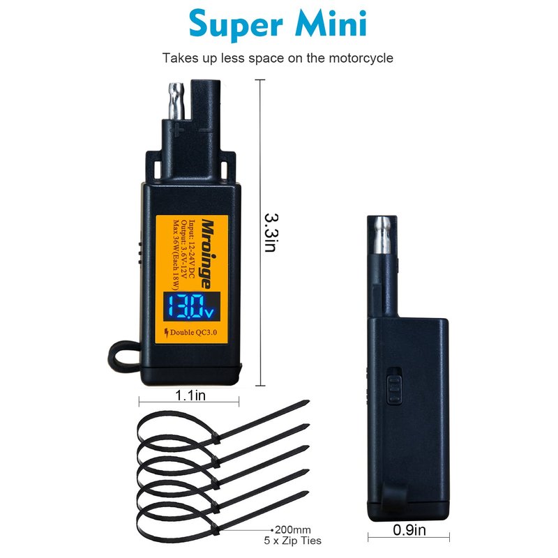 - Small and portable,with Zip tie hole for easy to install, Included 1.1m(43 Inches) SAE to SAE extension and 5pcs Zip tie. With 2-year warranty.