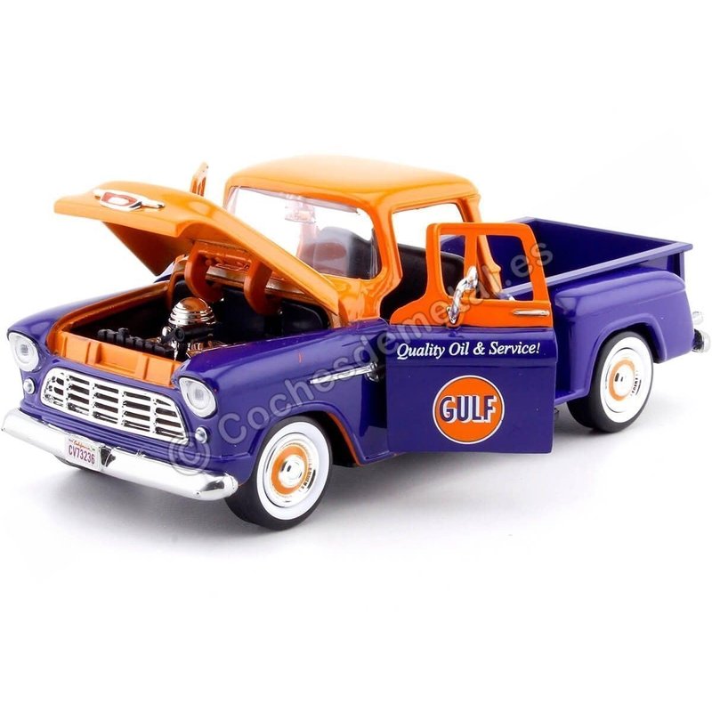 Motormax 1955 Chevrolet 5100 Stepside Pickup Truck Gulf Dark Blue and Orange 1/24 Diecast Model Car