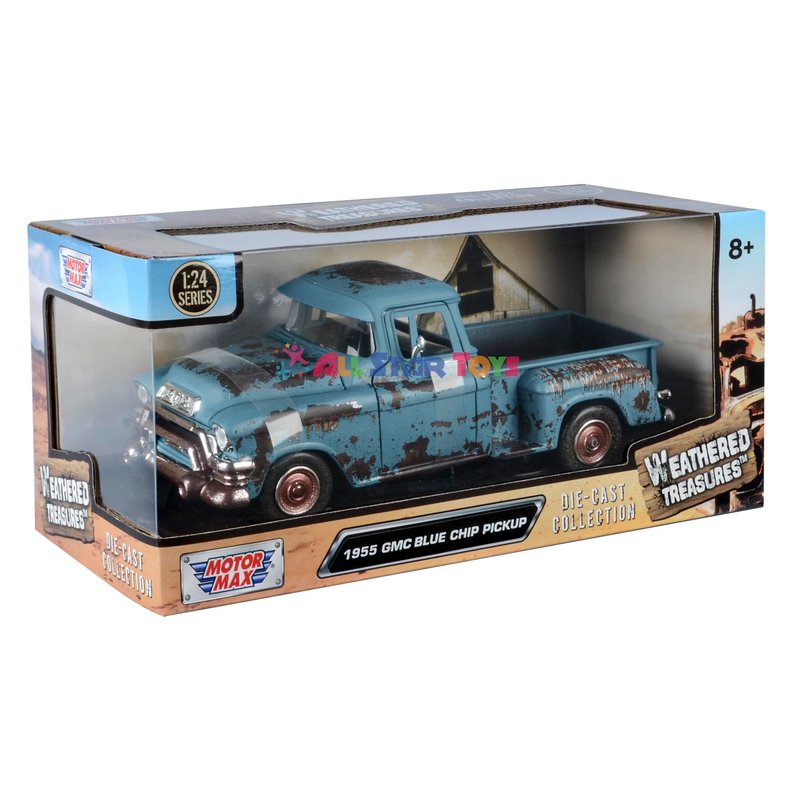 Motormax 1955 GMC Blue Chip Pickup Weathered Treasueres Barn Find 1/24 Scale Diecast Model Car 79071 All Star Toys Edition