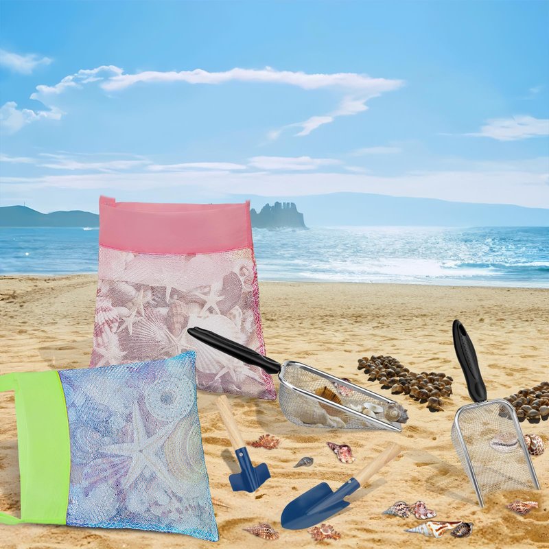 - Easy to Carry: this shell collection beach toys is easy to carry and store, doesn't take up too much space, and won't be a burden when playing outdoors; The seashell bag with adjustable straps is small and lightweight, and can be folded up and put into a pocket or backpack when not in use. Note: When the stainless steel sand shovel is not in use, please rinse it with water and keep it dry to avoid rust