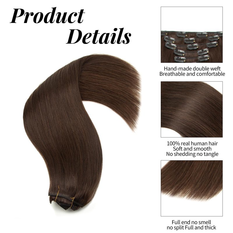 - **Seamless and Discreet**: Designed for a flawless finish, our seamless clip in hair extensions human hair are undetectable once applied. Whether you choose black clip in hair extensions or brown clip in hair extensions human hair, the result is a natural, polished look.