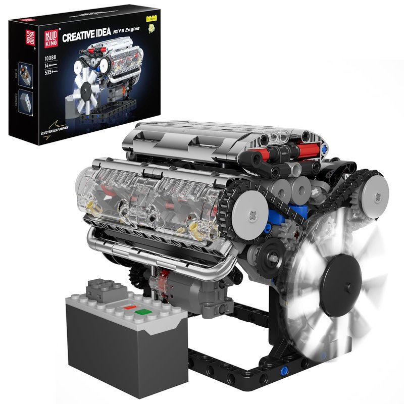 Mould King 10088 V8 Engine Model Kit Build Your Own STEM Mini V8 Model Engine Building Blocks Sets That Works for Adults & Kids Age 14+, 535Pcs