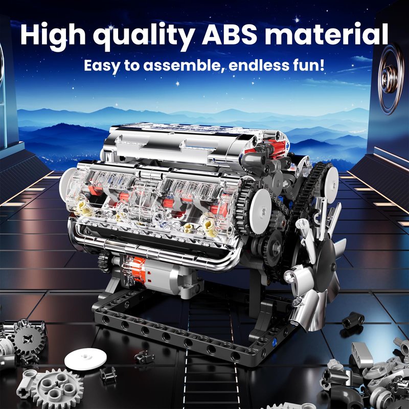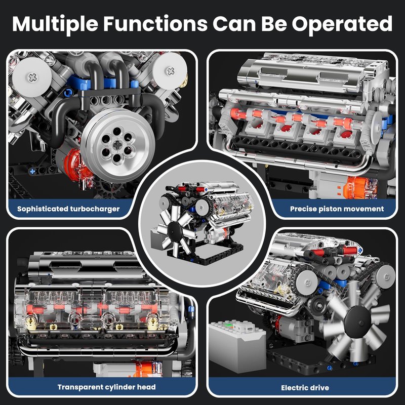 - Realistic Design: This set features highly detailed and transparent design elements, including a see-through cylinder head, simulated piston movement, and a turbocharger, providing an authentic representation of a V8 engine's inner workings. It is an excellent choice for car enthusiasts and those interested in mechanical engineering.