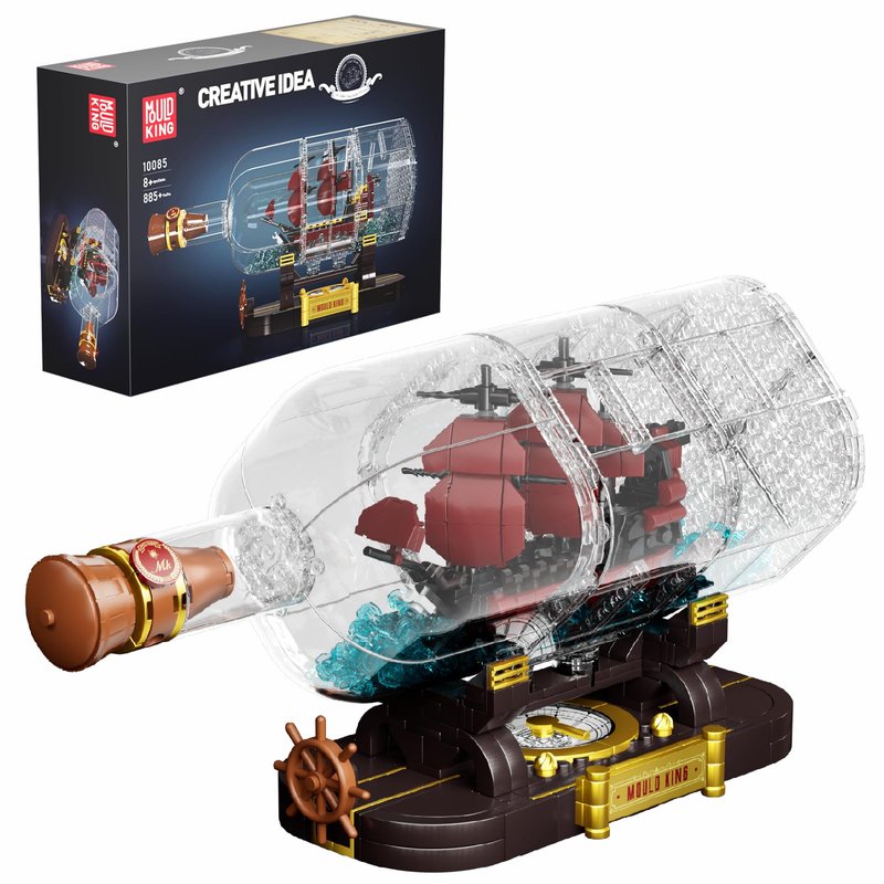 Mould King Ship in a Bottle Building Blocks sets, 10085 Revenge Pirate Boat Model Kits Toys, Collectible Display, STEM Creative Project for Adults and Kids Aged 8+ (885 Pieces)