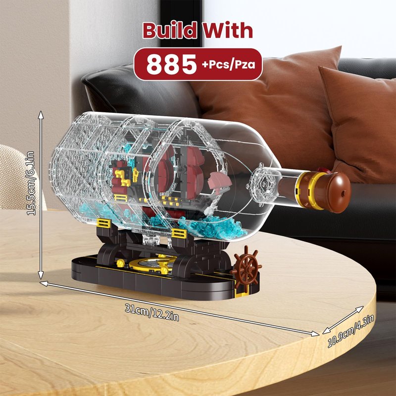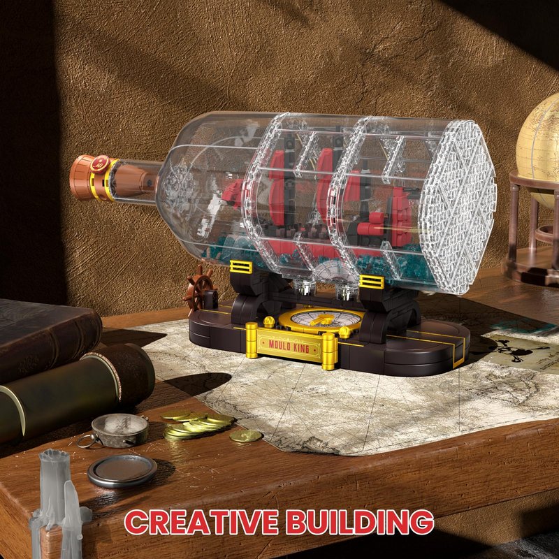 - Classic Design: This building block kit combining a drift bottle and a pirate ship, pirate and ocean elements combined into one, simulated the cork and wax seal on the drift bottle