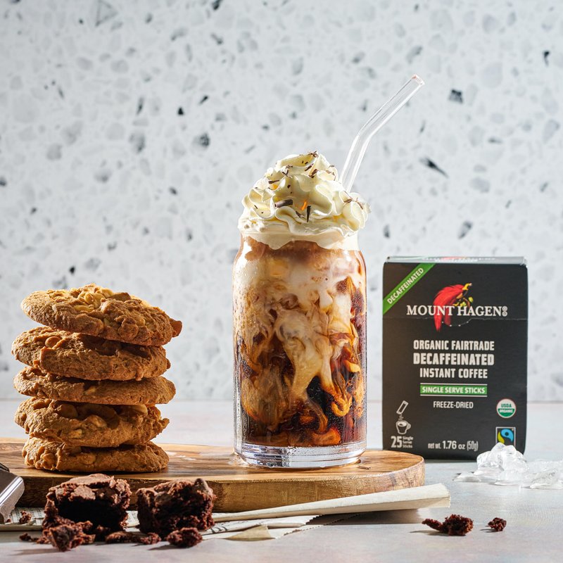 - INSTANT DECAF COFFEE THAT DOESN’T TASTE LIKE IT: When you need that coffee-flavored boost, Mount Hagen instant coffee singles are the answer. Our advanced freeze-drying and decaffeinating process retains the deep coffee flavors and aromas of the fresh Arabica beans, resulting in a wonderfully smooth decaffeinated coffee with a rich, full-bodied taste- even if you’re miles from the nearest coffee store! Plus, our instant coffee dissolves beautifully in cold water or milk for instant iced coffee.