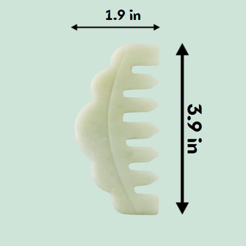 - Hand-Carved Jade Comb − Specifically designed for the most luxurious head and scalp massage, our jade comb scalp massager has a new and improved shape with more space between the teeth to accommodate more hair types!