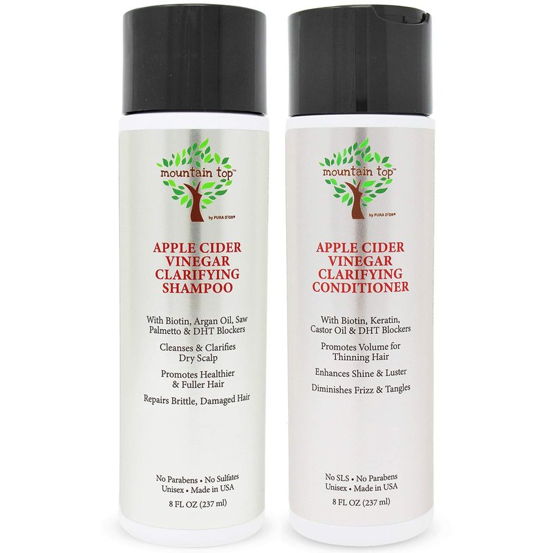 MOUNTAIN TOP Apple Cider Vinegar ACV Shampoo & Conditioner Set (2 x 8oz) with Biotin, Castor Oil - Fuller & Thicker Hair, Reduced Frizz, Split Ends - Paraben, Sulfate Free, All Hair Types, Men & Women