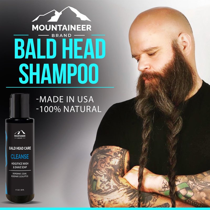 Mountaineer Brand Bald Head Care For Men | Exfoliate (4oz) and Cleanse Shampoo (4oz) | All Natural Exfoliating Scalp and Face Scrub | Moisturizing and Hydrating Shaving Soap and Wash