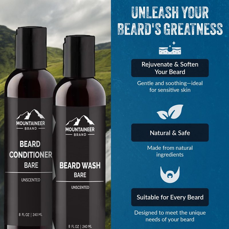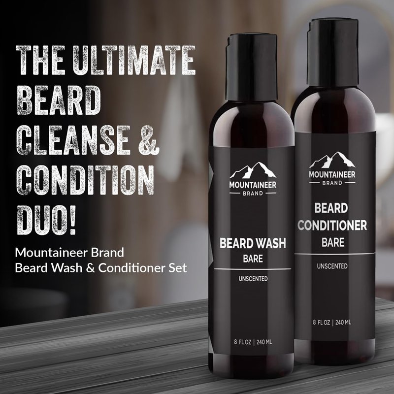 Mountaineer Brand Basic Beard Bundle | Beard Wash and Conditioner for Men | Beard Shampoo / Beard Conditioner Set | Deep Cleans | Leaves Hair Soft and Hydrated | Unscented | 2 Count | 8oz