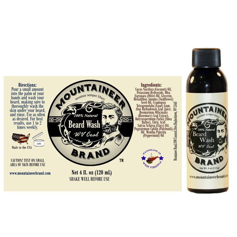 Mountaineer Brand Beard Wash For Men | 100% Natural Beard Shampoo | Thick Cleaning Softening Lather for Hair and Skin | Hydrate and Detangle | Grooming Treatment | WV Coal Scent 4oz