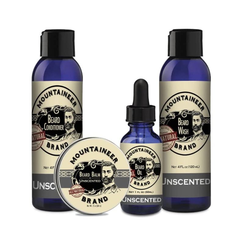 Mountaineer Brand Everyday Necessities Beard Bundle | Beard Wash, Conditioner, Beard Balm, Beard Oil for Men | Cleans, Hydrates Wiry Beards | Leaves Hair Soft and Manageable | Unscented Scent