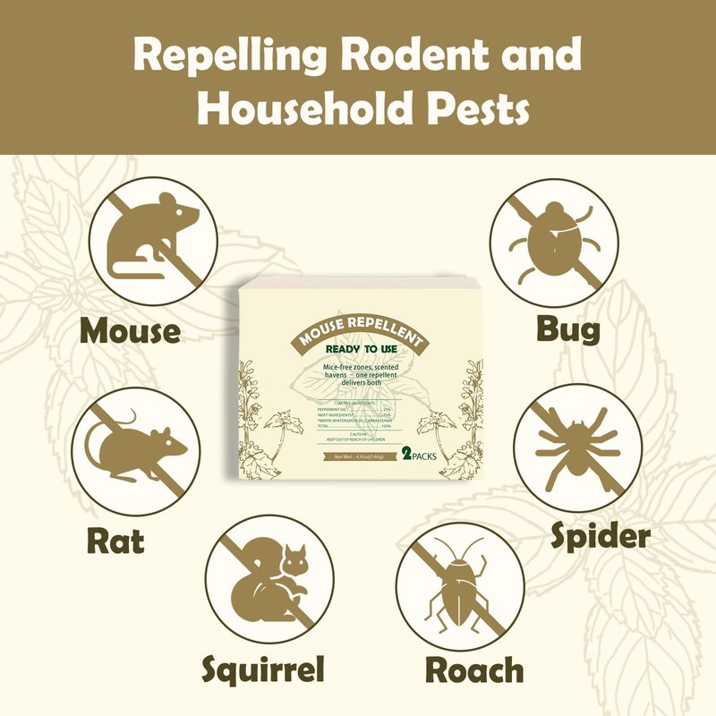 Mouse and Rat Repellent Indoor, Peppermint Oil to Repel Mice and Rats, Extra-Strength Plant-Based Rat Repellent for House Squirrel Rodent Deterrent for Indoor Use, 2 Pack