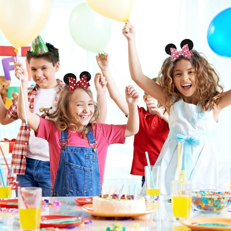 Package included: 2pcs red & 2pcs pink mouse ears hair clip Cute hair bows clips with mouse ears design and shimmer polka dot print adding charming to your little girls. The glitter hair clips lend an ethereal sparkle to hair. Glitter mouse clips perfect addition for you, enjoy the feel of the princess. The mouse hair clips are not only suitable for mouse theme party decorations or mouse cosplay costume accessories, but also they can suitable for trip, Halloween, Christmas, birthday party, bachelorette theme party.