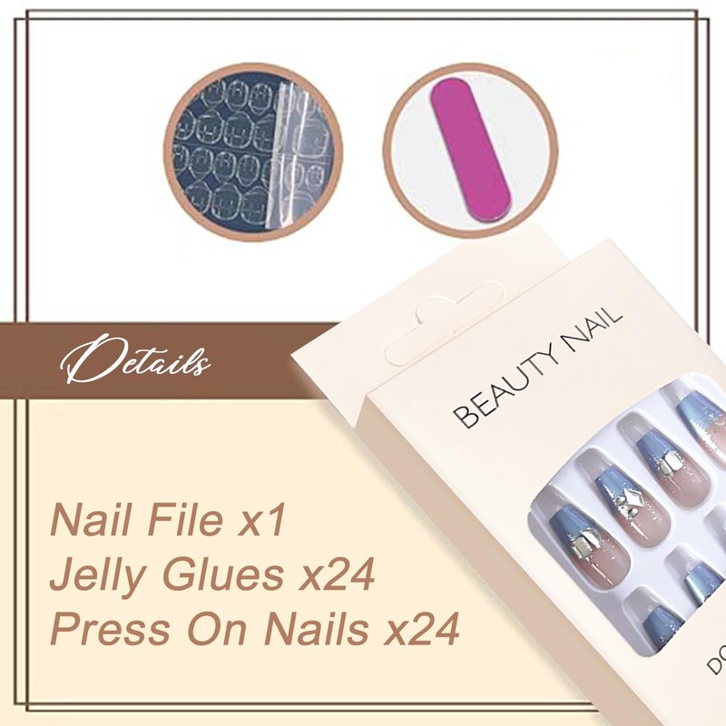 - [Press On Nails Short]The fake nails set includes 24 capsules of jelly glue and 24 different sizes of fake nails,allowing you to choose the right size for your nails.The set also comes with a nail file,which can be used to trim the shape and edges of your nails to make the fake nails perfect.