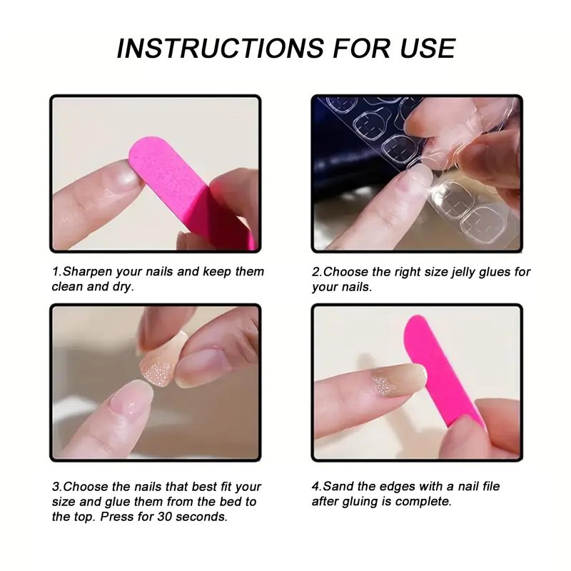 - [Fake Nails With Designs]False nails are very easy to use,first sharpen your nails,keep them clean and dry,choose the right size of jelly glue for your nails,choose the best size of fake nails for you,press the cute nails on your fingers for 30 seconds!Polish the edges with a nail file when the gluing is done.