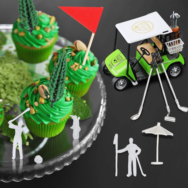 - Rich Styles and Quantity: you will receive 21 pieces of golf cake decorations, Including 1 green golf cart, 3 golf clubs, 2 golf balls, 5 green trees, 5 sun umbrellas, and 5 red pennants,enough amounts and styles can meet your cake decorations, making your cake look more charming