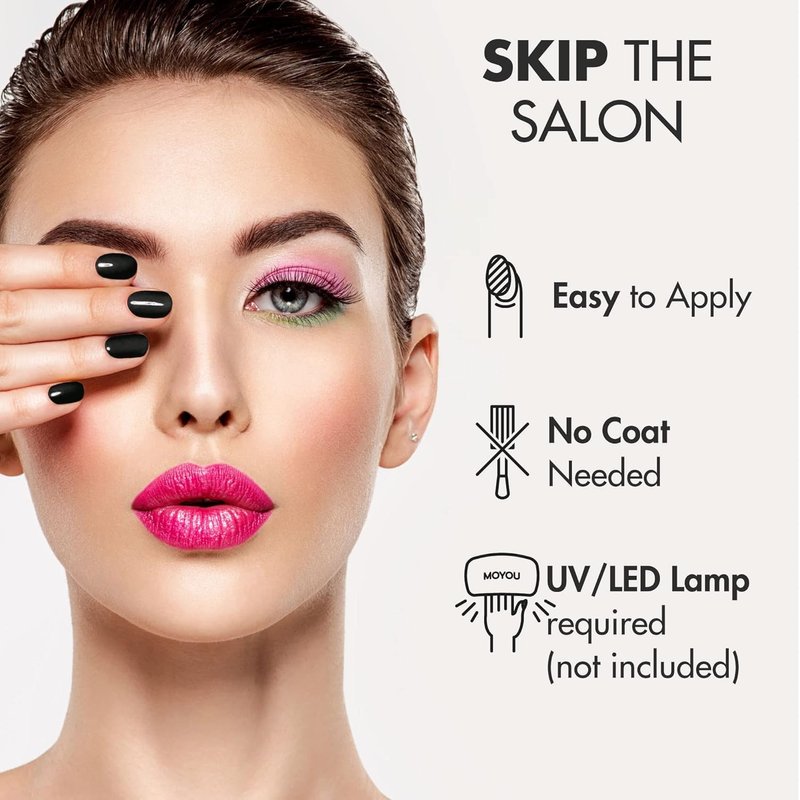 Want professional-quality semi-cured gel nails but not the hassle? Gel nail polish can be messy and requires a steady hand and a lot of patience to get right. Your MoYou London strips are quick and easy to apply. Simply press the wrap onto your clean nail, trim the excess, and file it smooth. Then cure it under a UV nail lamp for 60 seconds. They come off as easily as they go on—simply use your included cuticle stick to lift off when you want to change things up.