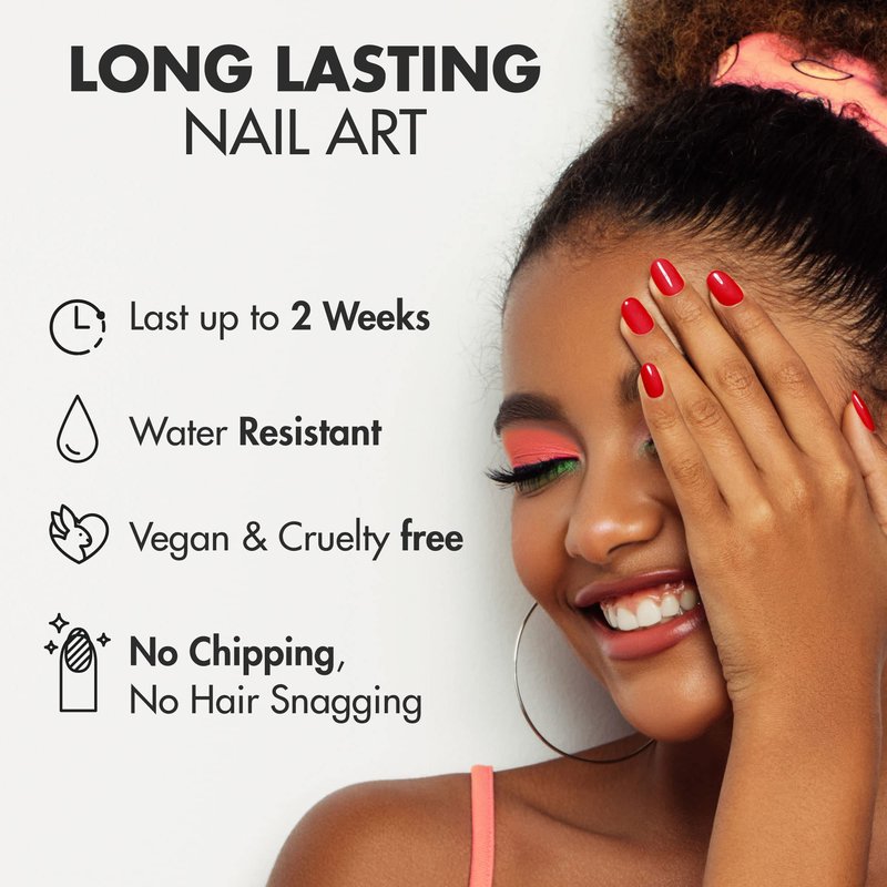 - All Set – Your nail art kit includes 20 semi-cured gel stickers for nails, a wooden cuticle stick, and a nail file. The set is vegan, not tested on animals, and contains no harsh chemicals. Disclaimer: The shade on the box may slightly differ, but rest assured, the nail strips inside match the color as shown on the images above.