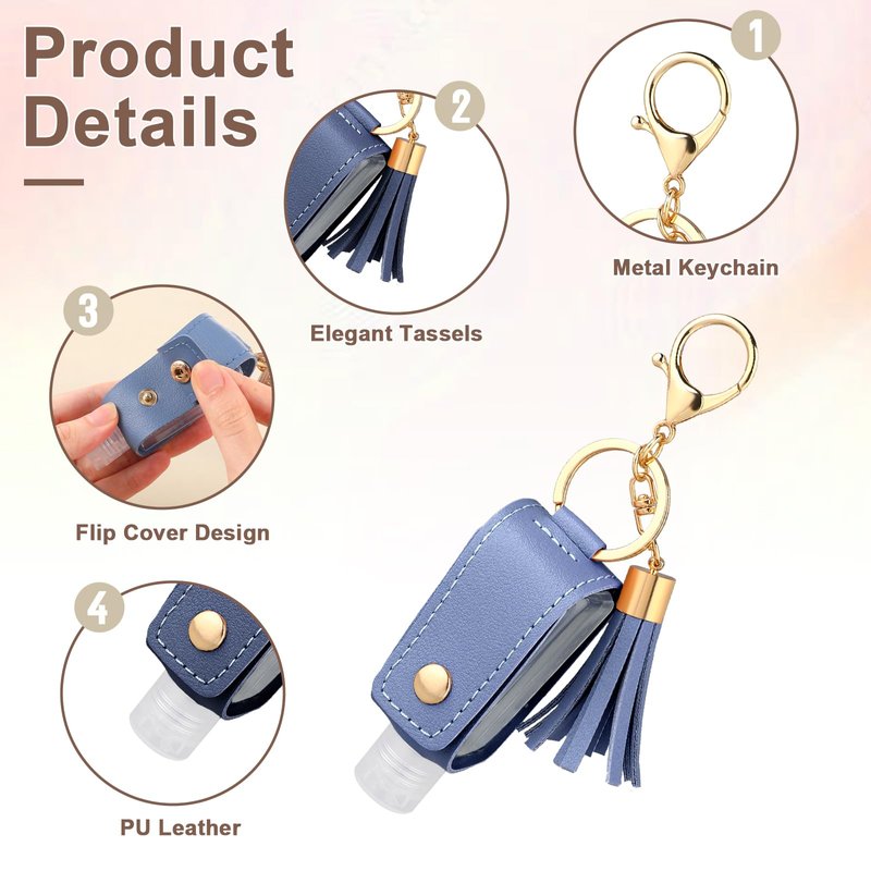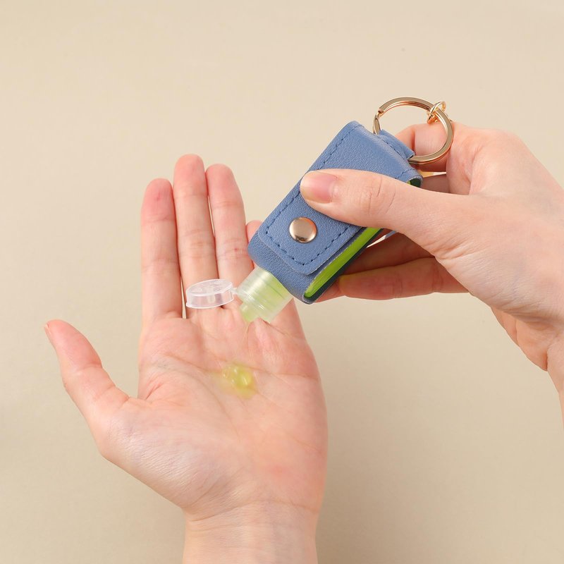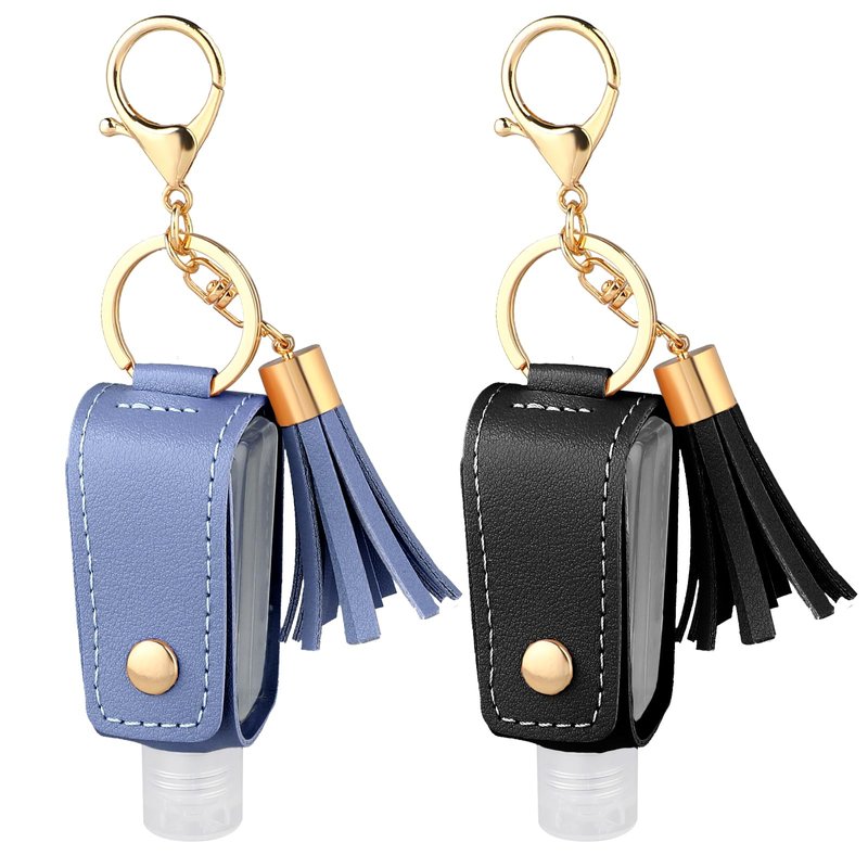 - Package Contents: You will receive two hand sanitizer travel holders with leather keychain attachments, one in black and one in blue.