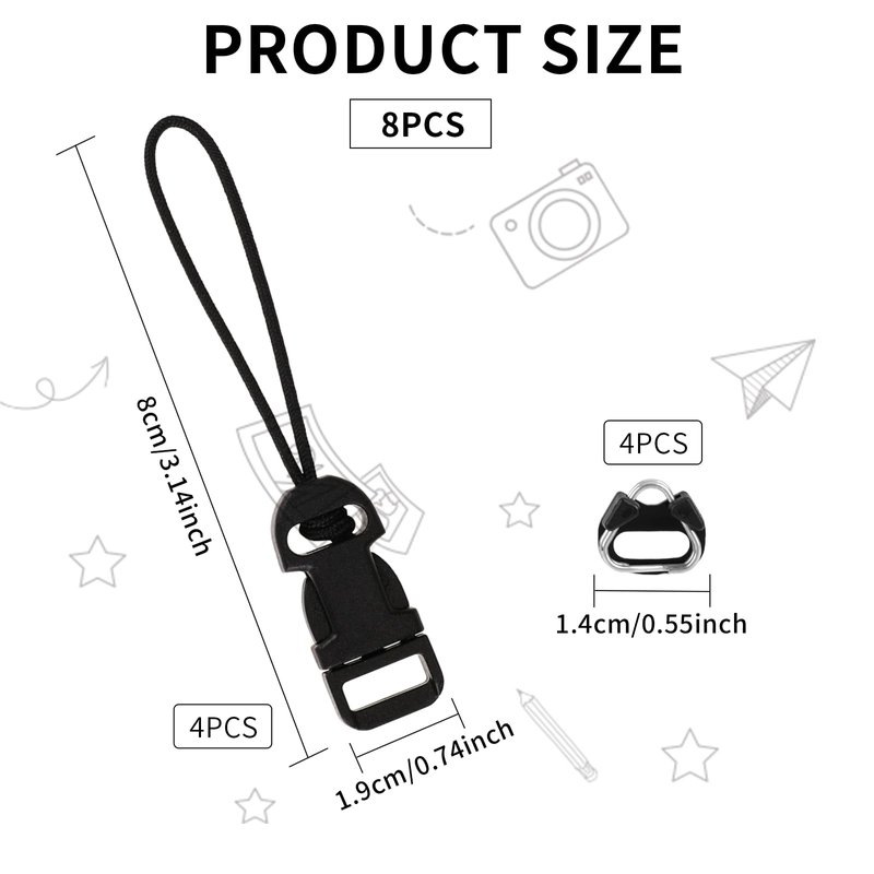 - Packing list: You will receive 8 black camera quick release connectors and quick release buckles