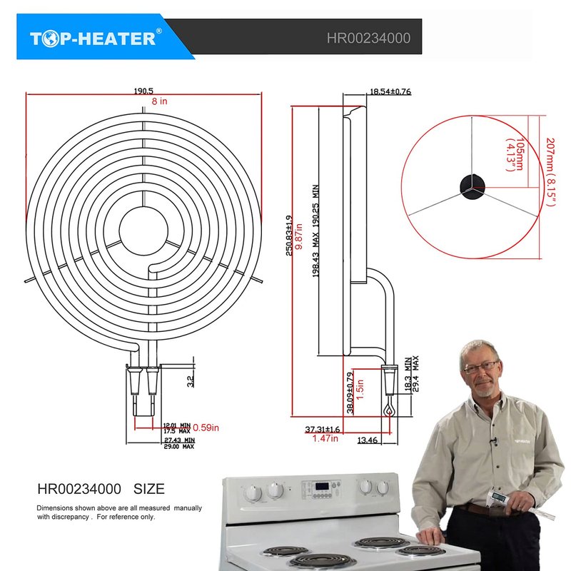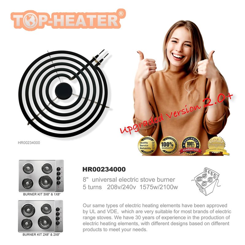 - 【WHAT YOU GET】1pcs MP21YA 8" Electric Range Burner Elements – 5-Turns ,208V 1575W, 240V 2100W. Please check the dimensions to ensure the range burner element fit your electric stove. If you are not sure about it, please feel free to email us to confirm compatibility. We will reply you in the first time