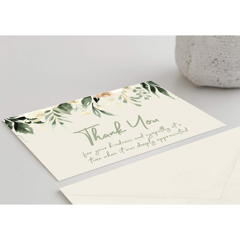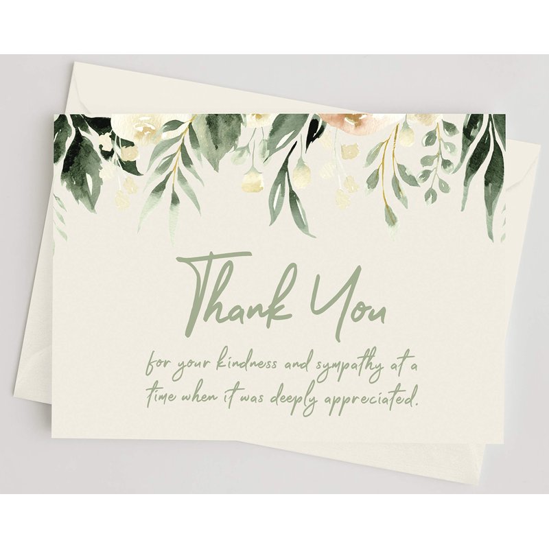 - GREEN FLORAL: After Funeral Bereavement Sympathy Thank You Cards