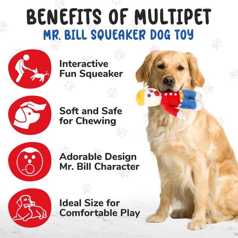 Multipet Mr. Bill Dog Toy 6" Squeaker Dog Toy, Multicolor Officially Licensed
