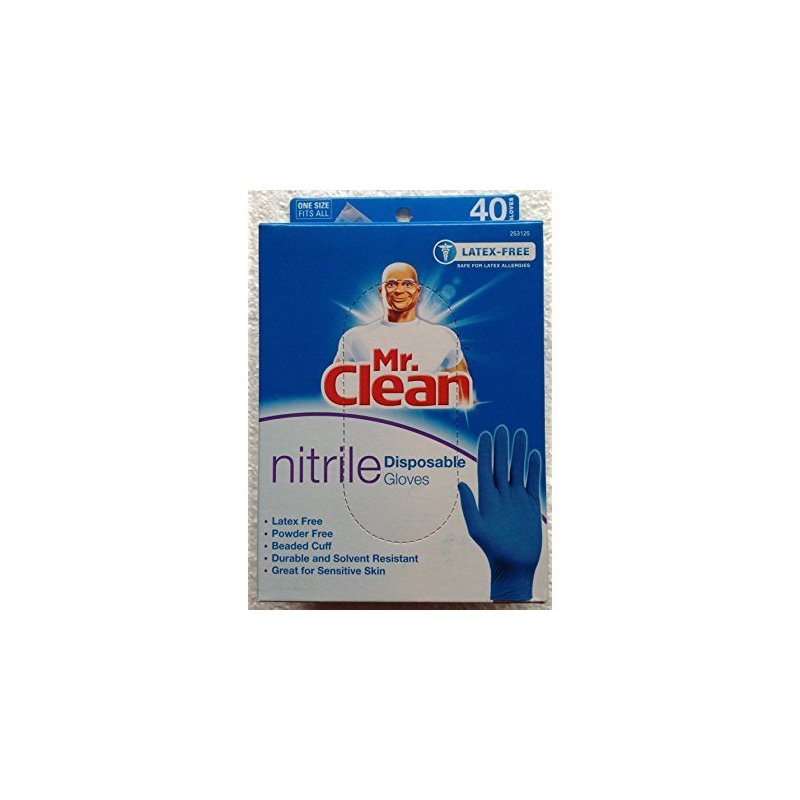 MR. CLEAN NITRILE Disposable Gloves (50 Count);Latex Free...Powder Free...Great for Sensitive Skin;Beaded Cuff...Durable and Solvent Resistant;These Gloves are Ideal for: CLEANING, AUTOMOTIVE CARE, PAINTING, HAIR COLORING, ARTS & CRAFTS & More;Adult--One Size Fits All
