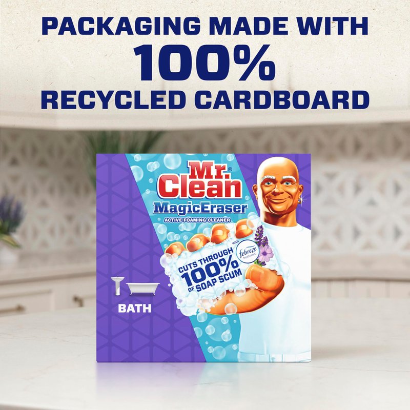 - The Mr. Clean Magic Eraser bath scrubber with Febreze Lavender scent erases 3x more Soap scum vs. The leading all-purpose Spray Cleaner