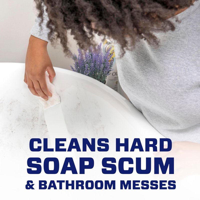 - Use to remove soap scum from even the toughest areas of your bathroom: hard water on shower glass, soap scum on bathtub, grime on tile and grout, hairspray and Toothpaste residue on counters and sinks