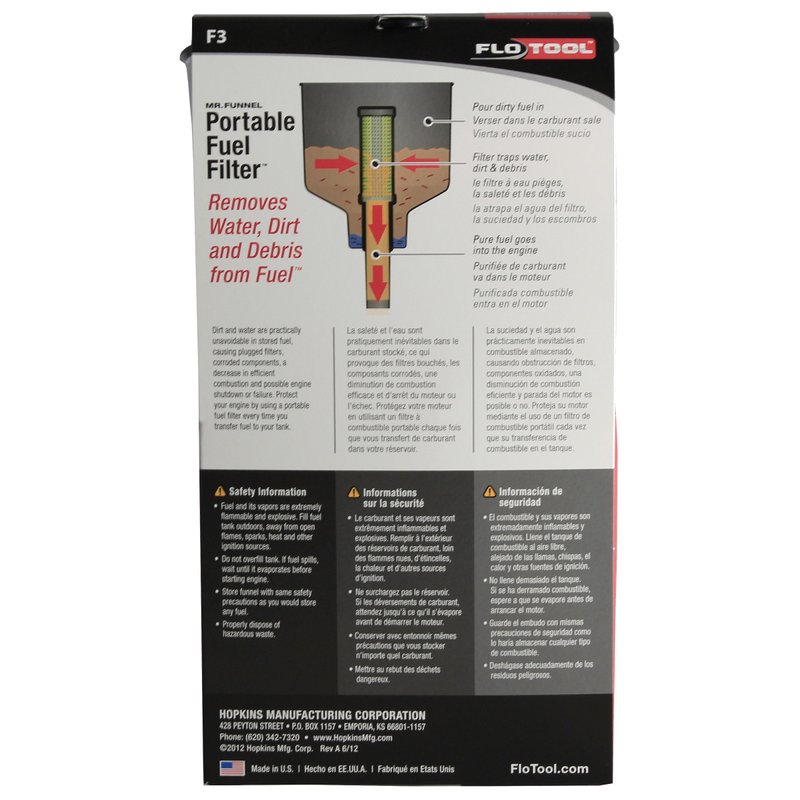 Mr. Funnel 3.5 Gallons Per Minute Fuel Filter - Removes Water, Dirt and Debris from Fuel, Compatible with ATV, Black, Industrial Grade Conductive Polypropylene