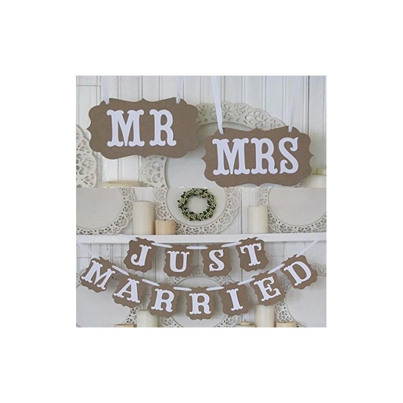 - ♥Package Includes: 1 x MR MRS photo props / Wedding chair signs (with string), 1 x JUST MARRIED banner garland